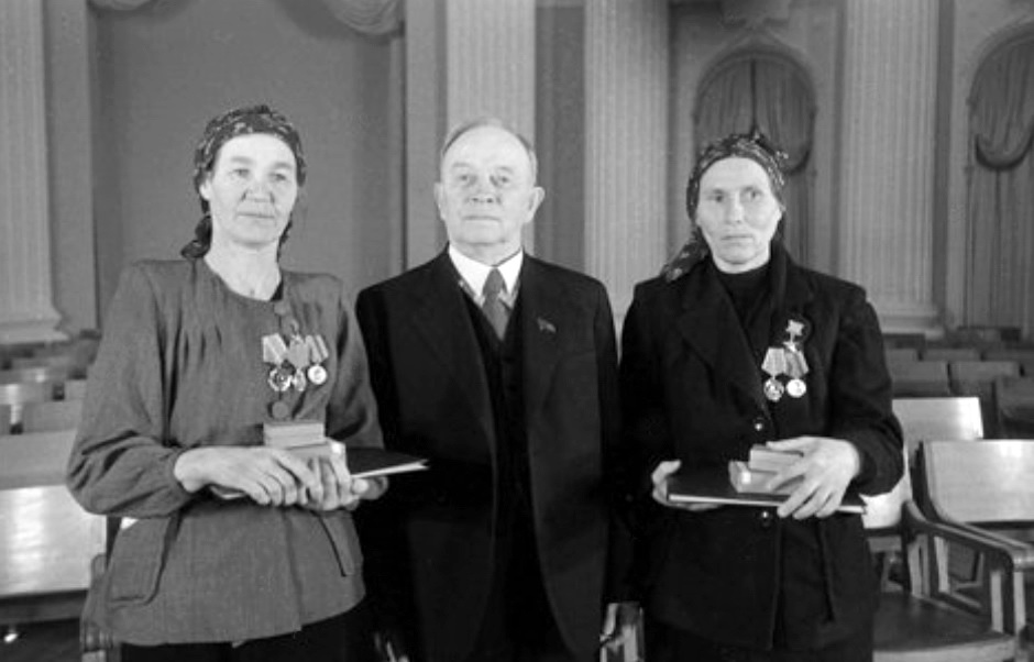 Этим же указом высокого звания были удостоены её подруга и соперница по соревнованию – бригадир К.Н. Пономарёва и передовая звеньевая М.С. Гаврюшенко.