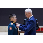 Награда была вручена Герою 20 августа 2024 года в Национальном центе управления обороной Российской Федерации министром обороны А. Р. Белоусовым.