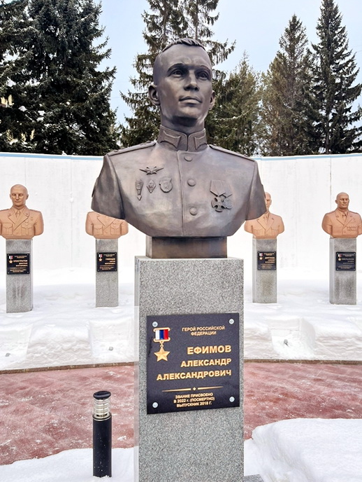 Открыт 9 декабря 2022 года на здании гимназии №8 имени Героя Российской Федерации А. А. Ефимова в городе Можга Удмуртской Республики (Вешняковский микрорайон, Родниковская улица, дом 13). Фото из семейного архива.
