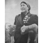 Темирова Асипа – старший чабан совхоза «Кочкорка» Кочкорского района Тянь-Шаньской области, Киргизская ССР.