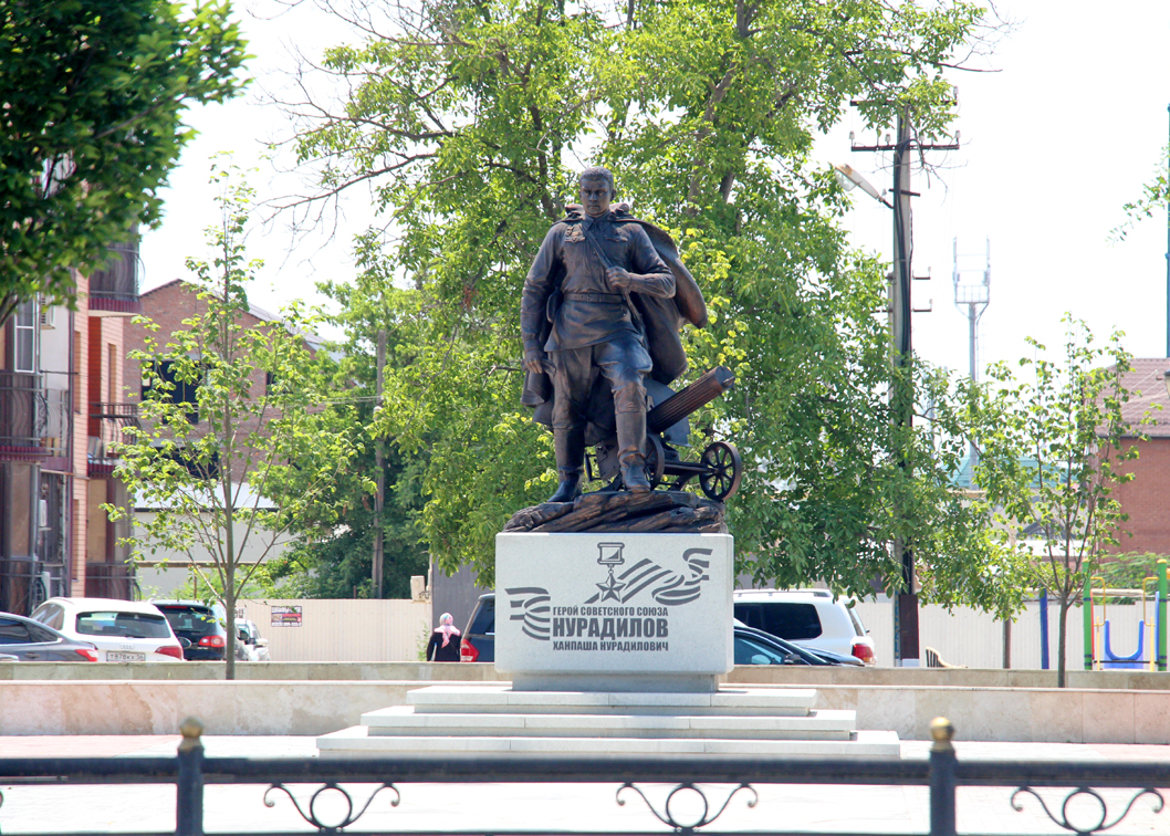 Установлен в городе Грозный на проспекте Ахмата Кадырова (на пересечении с улицей Кан-Калика). Открыт 9 мая 2018 года. Фото Вячеслава Бердникова, 27.06.2018.