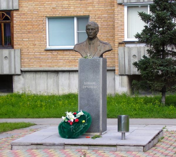 Бюст в начале улицы Демакова в городе Новосибирск. Фото М.В.Вологодского (Новосибирск), 2.08.2009.