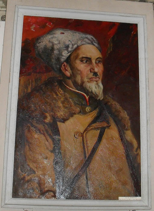 Картина С.А.Ковпак. Художник Р.В.Осипов (Орёл, 1969). Масло. Холст. Находится в экспозиции Народного музея дважды Героя Советского Союза С.А.Ковпака Глуховского колледжа Сумского национального аграрного университета (город Глухов Сумской области (Украина); улица Терещенков, 36). Фото Кирилла Осовика, 27.01.2010.