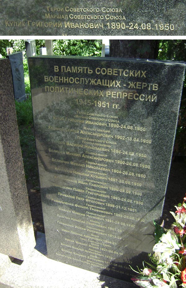 В Москве на Донском кладбище (участок 3). Памятник жертвам политических репрессий (общий вид и строка). Фото Валерия Воробьёва. 23.06.2010 г.