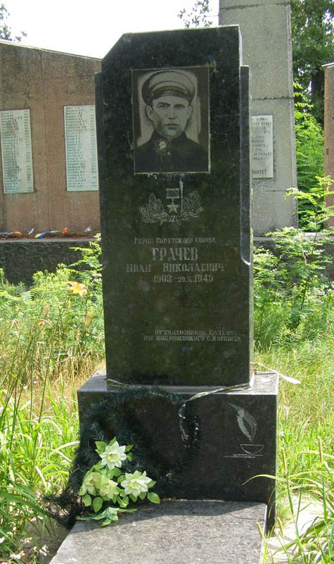 Установлен возле братской могилы в селе Ковпыта Черниговского района Черниговской области (Украина). Фото Олега Кожухаря, 13.07.2010.