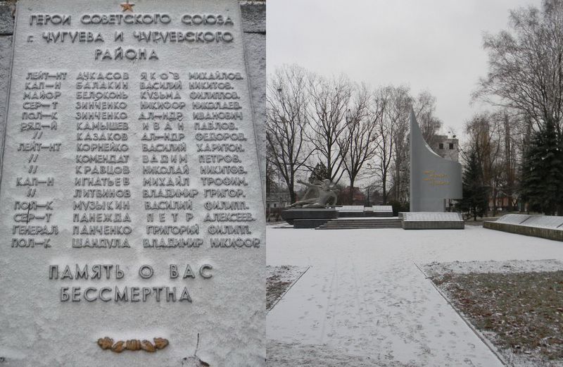 Памятный знак воинам-землякам в городе Чугуев Харьковской области. Фото Дмитрия Храмова, 12.01.2012.