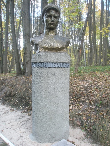 Установлен на аллее Героев в Спадщанском лесу под городом Путивль Сумской области (Украина). Фото Максима Зубова, 10.10.2009.