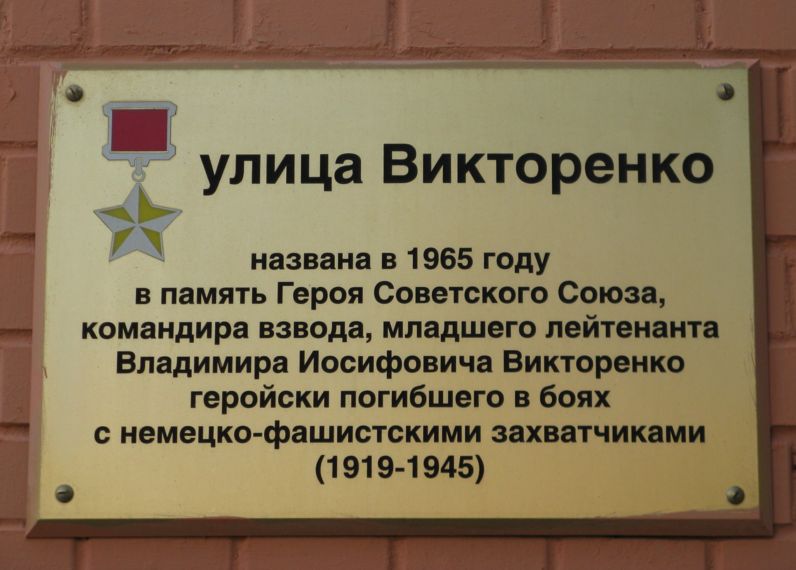 Доска была установлена в 1976 году на территории завода сантехнического оборудования (улица Викторенко, 16). В 2018 году перенесена и открыта по адресу: улица Викторенко, 10. Фото с сайта: logoworks.narod.ru