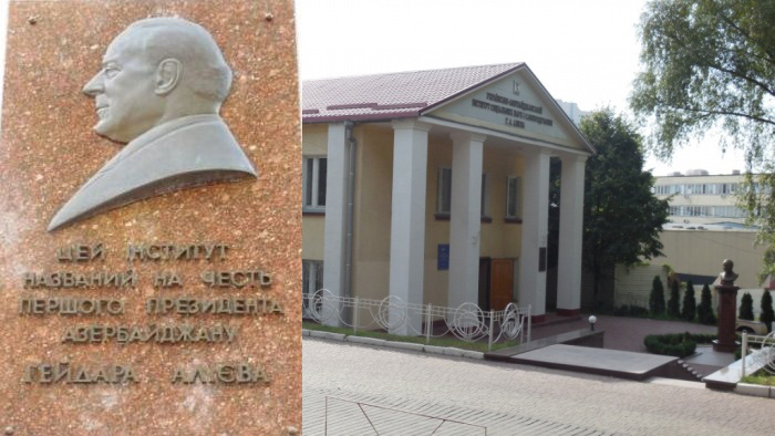 Установлен на здании Украинско-азербайджанского института социальных наук и самоуправления в городе Киев (Украина). Фото Александра Шульгина, 2014 г.