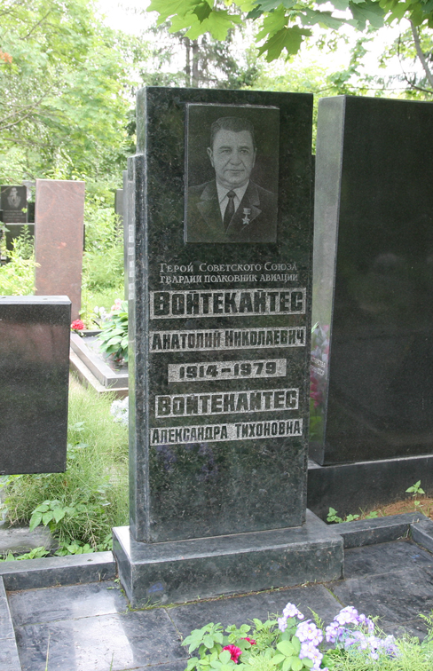 Установлен на Кунцевском кладбище (участок 9) в Москве. Фото Романа Литвинова (из книги «Московский некрополь Героев»), 2011 год.