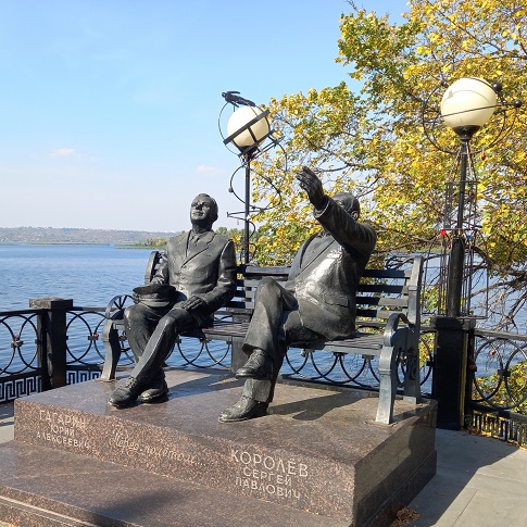 Памятник Ю.А.Гагарину и С.П.Королёву установлен в городе Таганрог Ростовской области.
