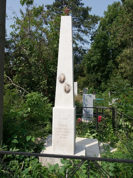 Установлен на Славянском кладбище (квартал 1, участок 15) в Краснодаре. Фото А.А.Симонова, 31.07.2016.