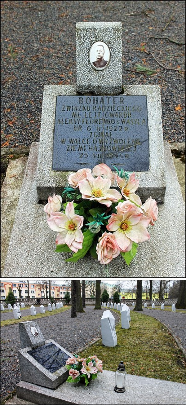 Похоронен на воинском кладбище в городе Хайнувка ныне Подляского воеводства Польши. Фото предоставлено Сергеем Ерофеевым.