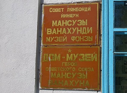 Вывеска на доме-музее в селе Милянфан