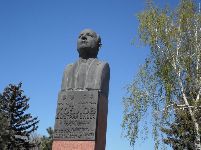 Бюст дважды Героя Социалистического Труда Д. И. Козлова на родине в Тихорецке. Фотография из фондов Тихорецкого историко-краеведческого музея Краснодарского края.