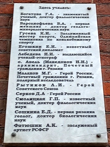 Установлена на здании МБОУ «Школа №1 имени В.П. Екимецкой» по адресу: г.Рязань, ул. Горького, 51. Фото А. Прищепова (СПб), сентябрь 2021 г.