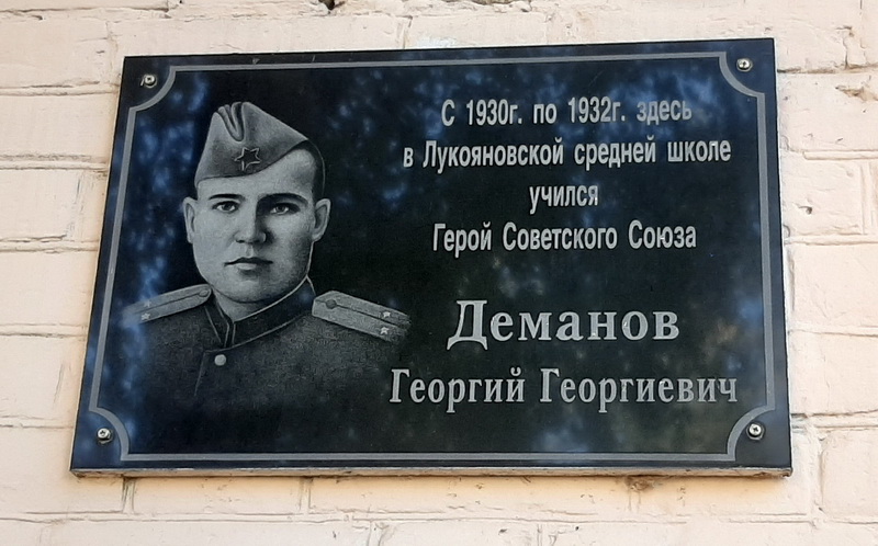 Установлена в городе Лукоянов (Нижегородская область) на здании Лукояновского педагогического колледжа имени А. М. Горького (площадь Мира, дом 4). Фото: Сергей Баев, октябрь 2021 года.