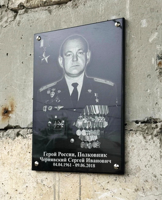 Установлена в городе Сызрань Самарской области на здании спортивно-патриотического клуба имени Героя С. И. Чернявского (улица Обороны, 6). Фото: Сергей Иванов (Сызрань), ноябрь 2025 года.