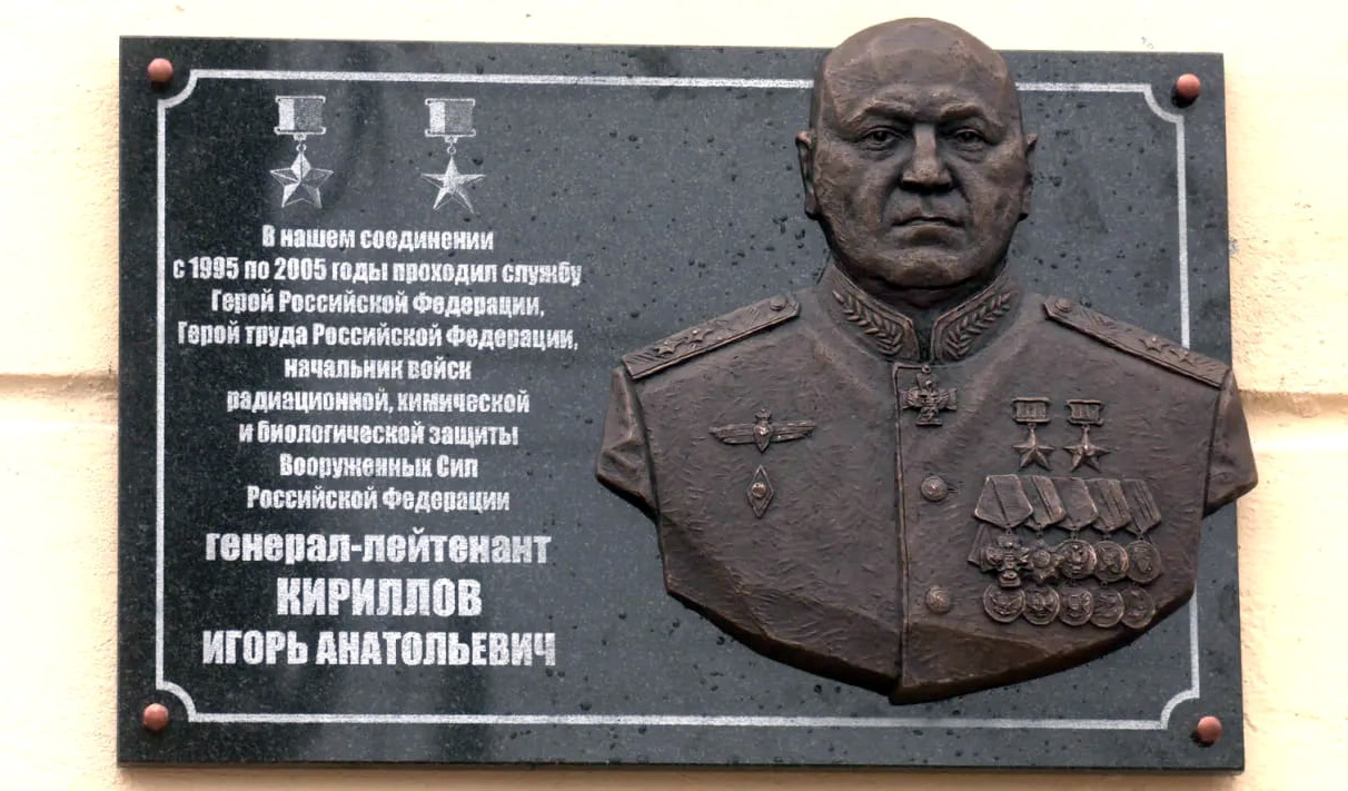 Открыта 31 марта 2026 года в городе Курске на здании 27-й отдельной гвардейской бригады радиационной, химической и биологической защиты (улица Дзержинского. дом 67). Фото: «ТРК Сейм».