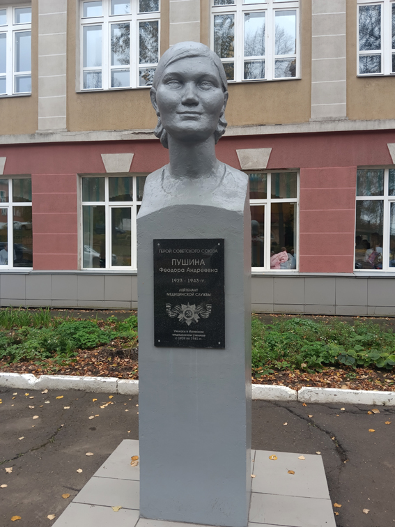 Установлена в Ижевске (улица Красногеройская, 12) на здании Ижевского медицинского колледжа, в котором в 1939–1941 годах училась Ф.А. Пушина.