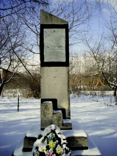 Установлен на месте первоначального захоронения К.Н.Курячего в селе Мелиховка Нововодолажского района Харьковской области Украины (с сайта http://staroverovka.ucoz.ua).