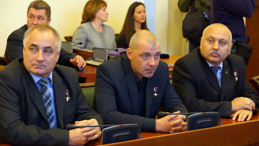 Слева направо: Герои Российской Федерации И. Е. Тарелкин,