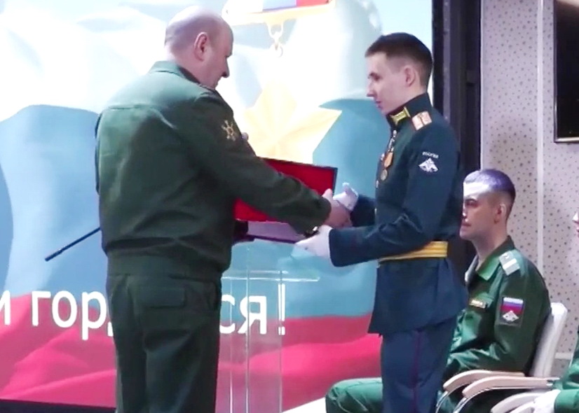 Герой Российской Федерации гвардии лейтенант В. В. Беликов на церемонии вручения медали «Золотая Звезда». Москва, 23 декабря 2023 года. Фото: ТРК «ЗВЕЗДА».