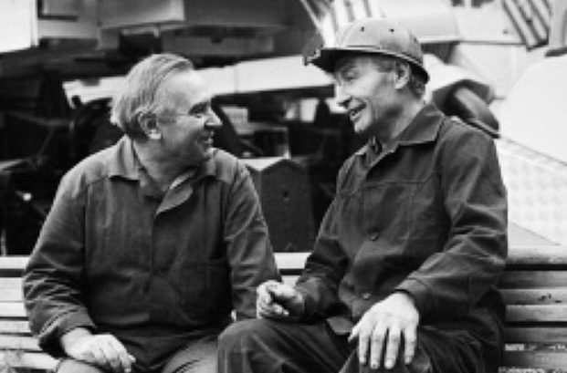Герои Социалистического Труда Одесского завода тяжёлого краностроения имени Январского восстания Виктор Чербаев и Михаил Залипаев (справа). Фото: Илья Павленко/Фотохроника ТАСС, 1 октября 1987 года.